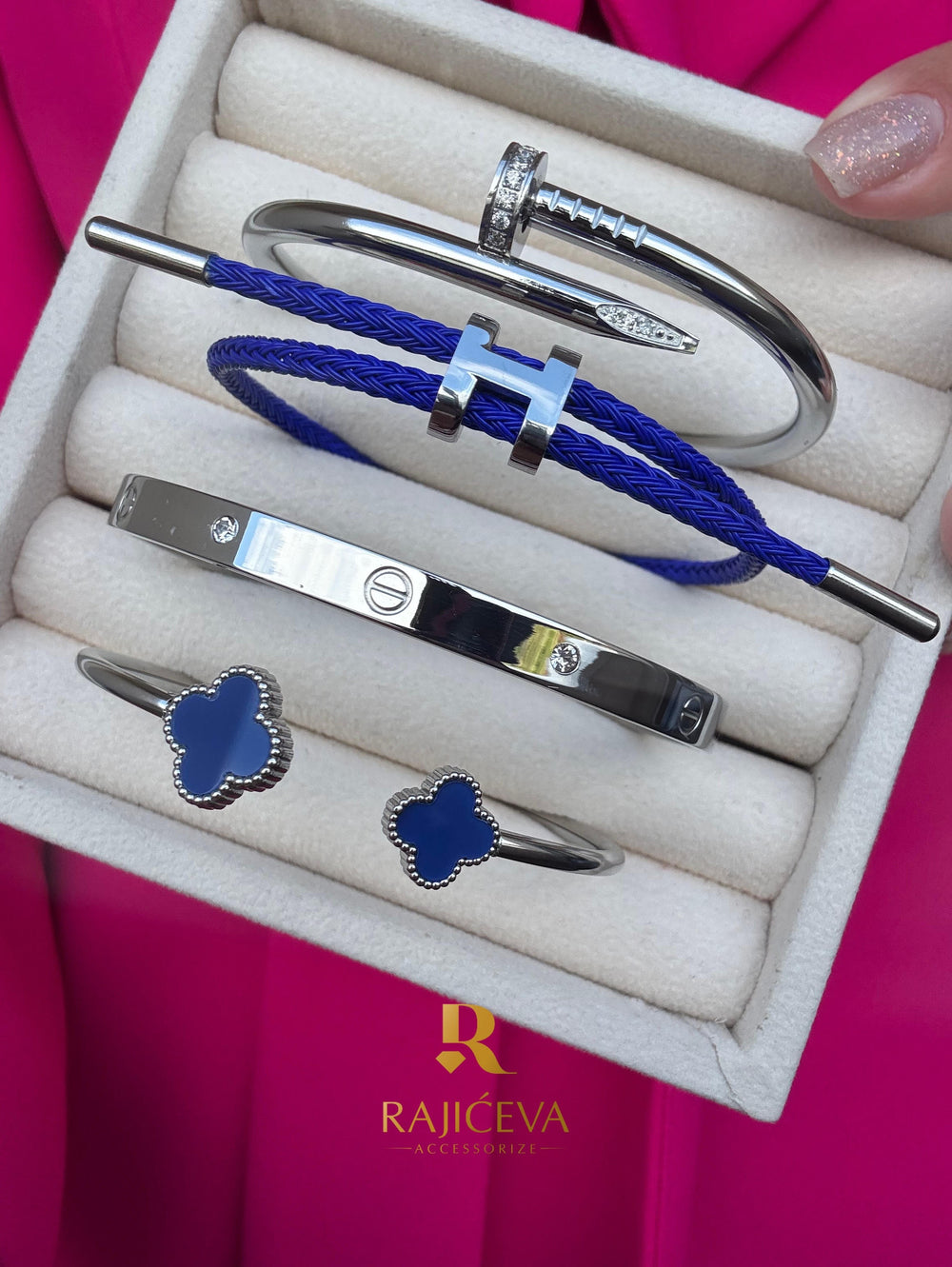 Ekser, Love, Lora i Sefora sa dve plave deteline narukvice u boji srebra.