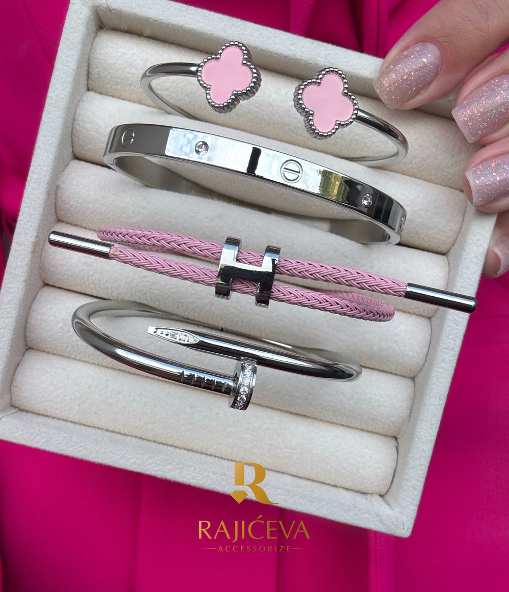 Ekser, Love, Lora i Sefora sa dve roze deteline narukvice u boji srebra.