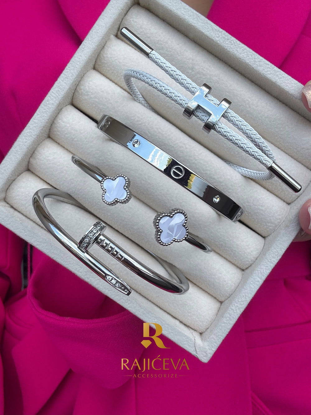 Ekser, Love, Lora i Sefora sa dve sedefaste deteline narukvice u boji srebra.
