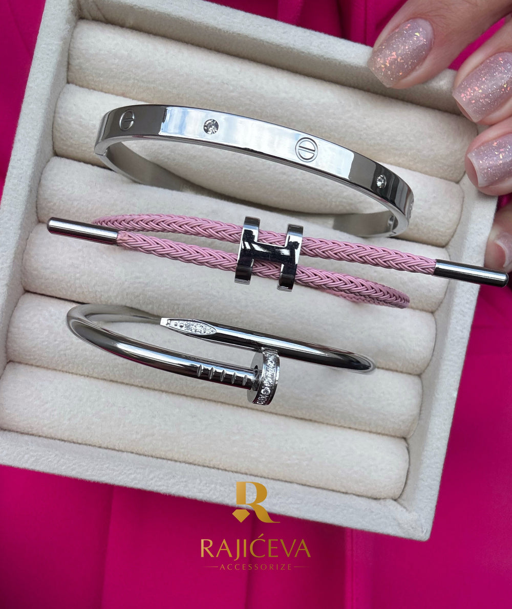 Ekser, Love, Lora roze narukvice u boji srebra.