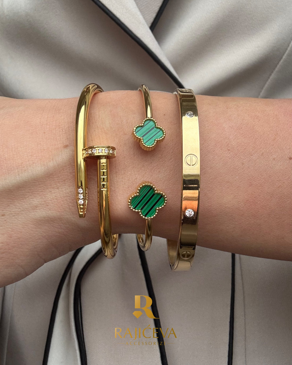 Set od tri Rajićeva narukvice - Love, Ekser i Sefora sa dve deteline u zelenoj boji.