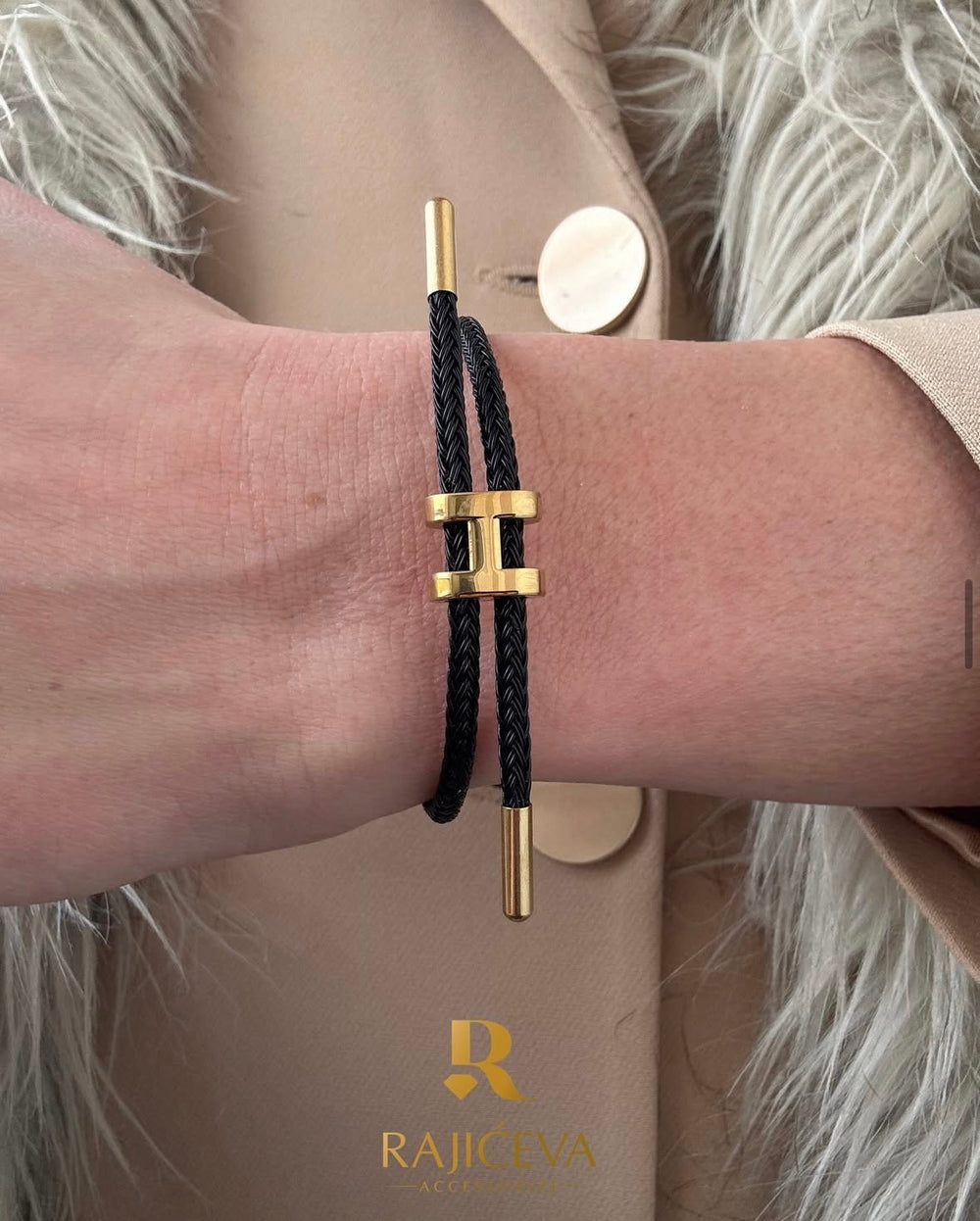 Lora narukvica u crnojboji sa zlatnim detaljima.