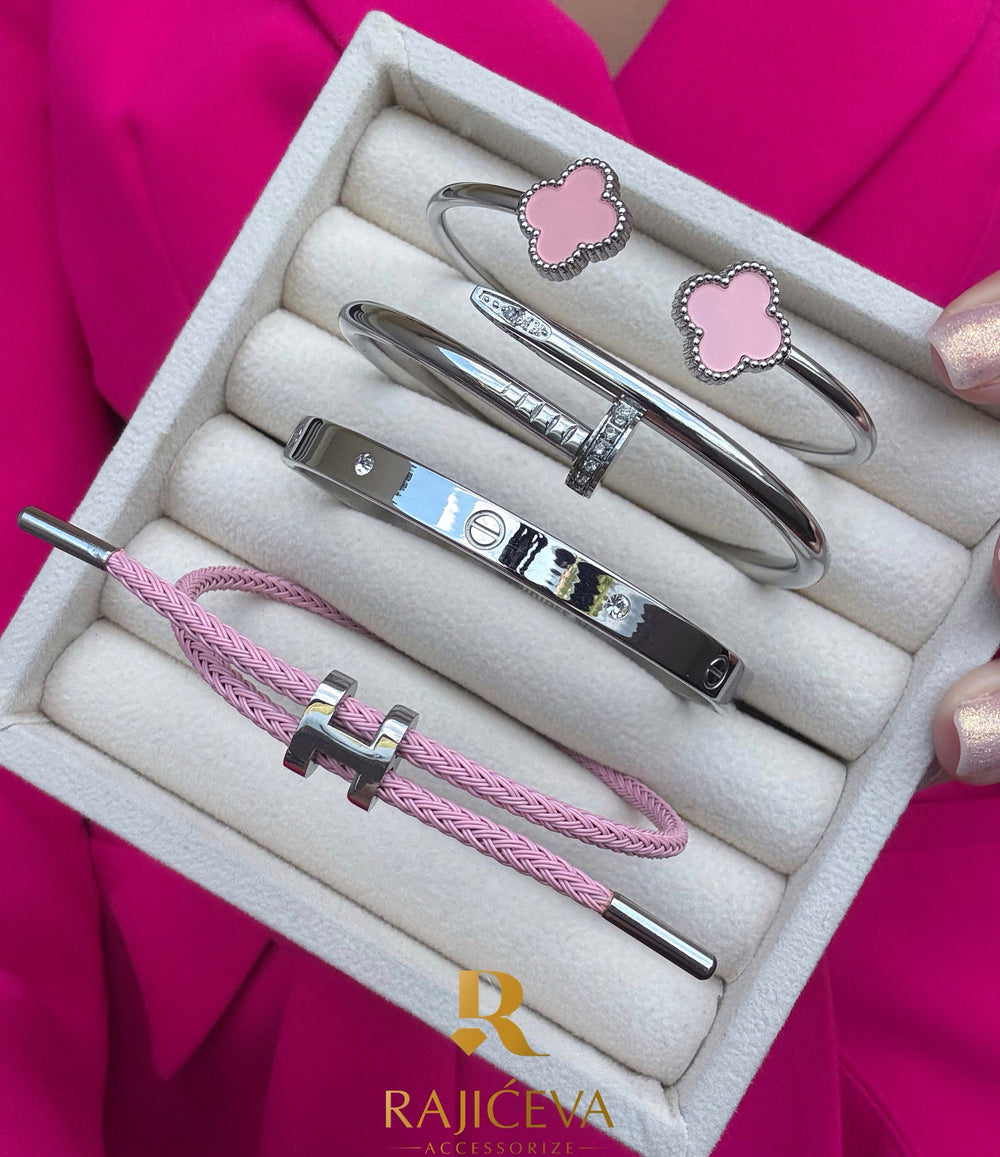 Ekser, Love, Lora i Sefora sa dve roze deteline narukvice u boji srebra.